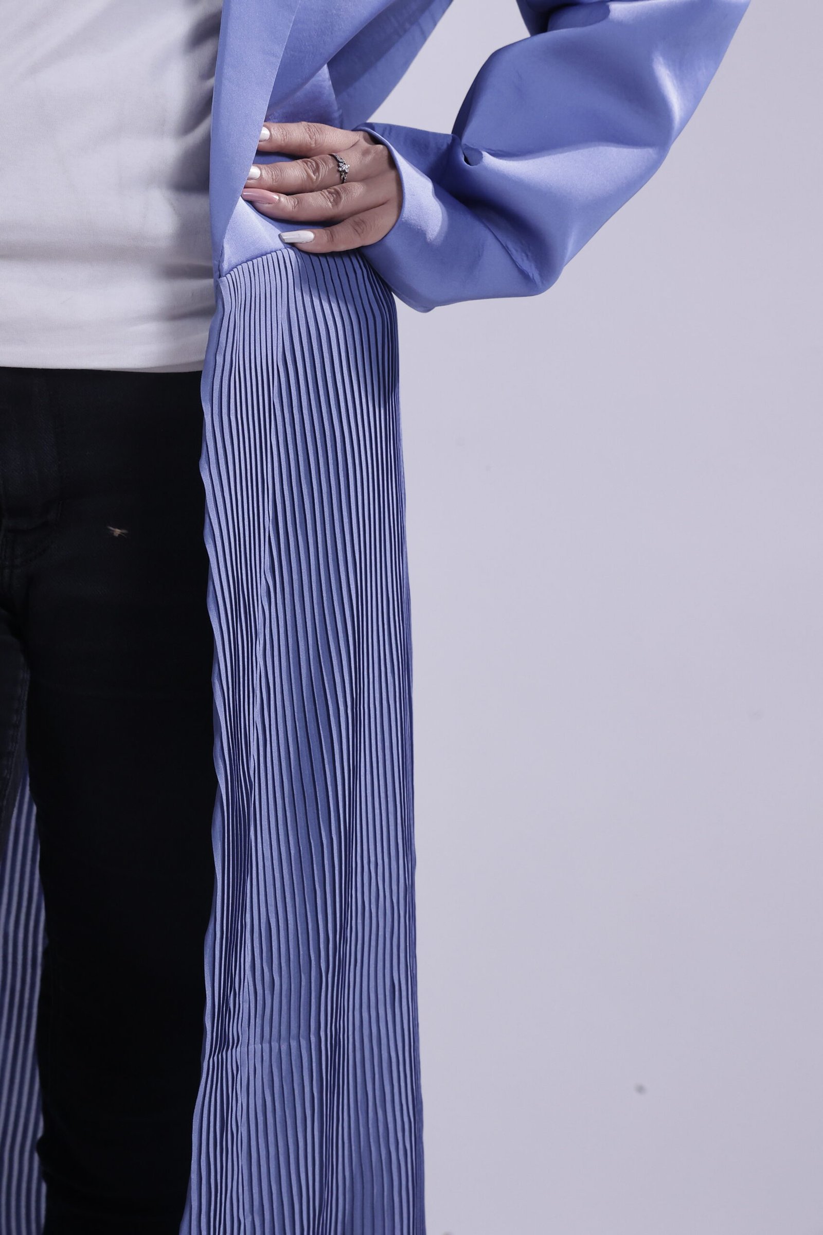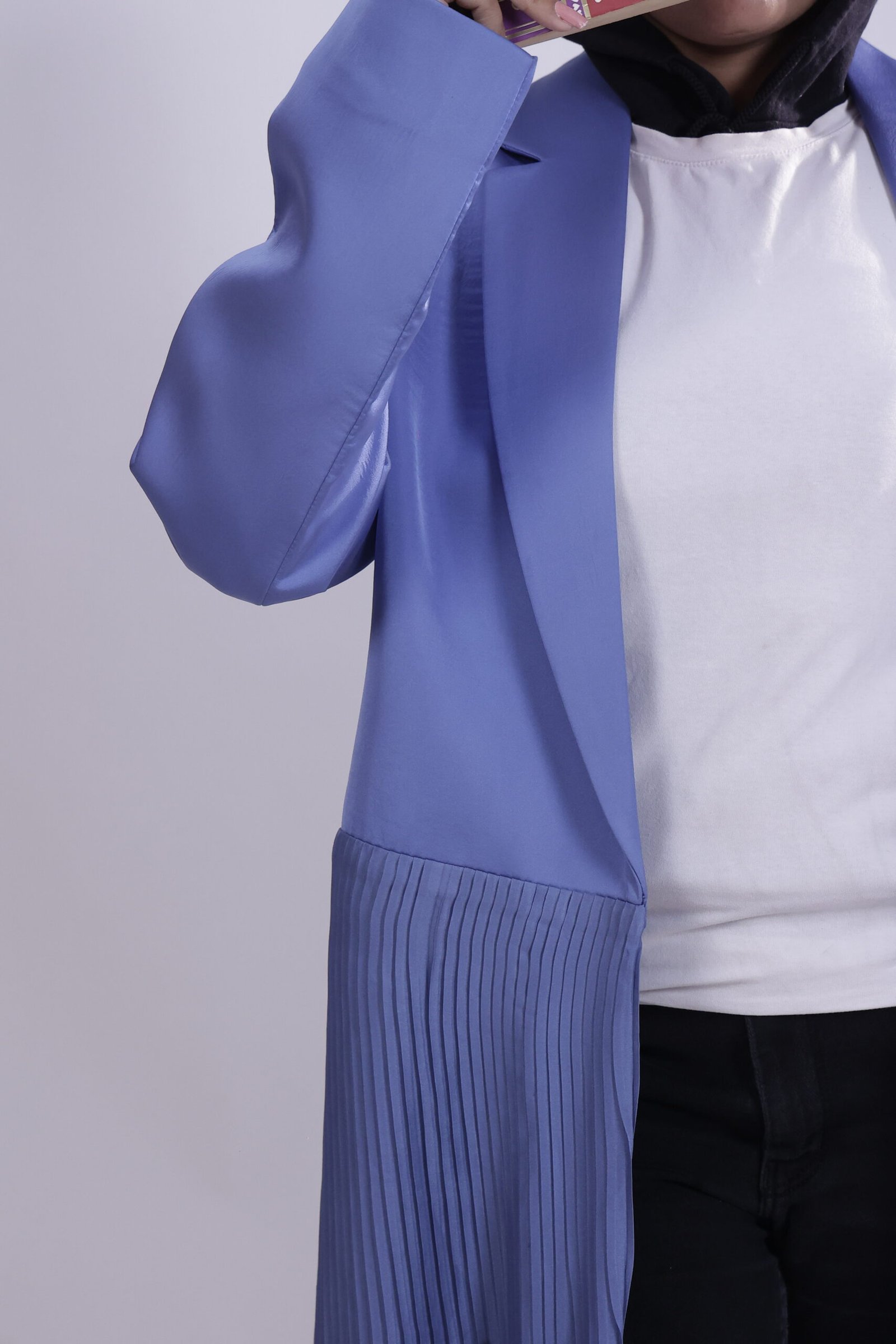 Inspired by modern city elegance, this abaya features a long tailored silhouette with structured lapels and delicate pleated panels, blending blazer-like sharpness with the fluid grace of modest wear.